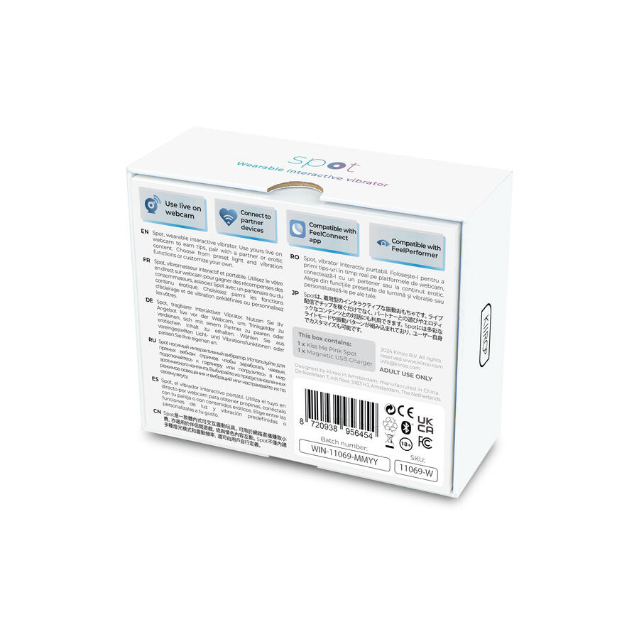 Avec le SPOT KISS ME de KIIROO, chaque moment intime devient l'occasion de découvrir de nouvelles sensations, atteignant un niveau de satisfaction que vous n'avez jamais connu auparavant. Laissez-vous aller et ressentez comment la technologie et le design s'unissent pour vous offrir une expérience de plaisir totale !